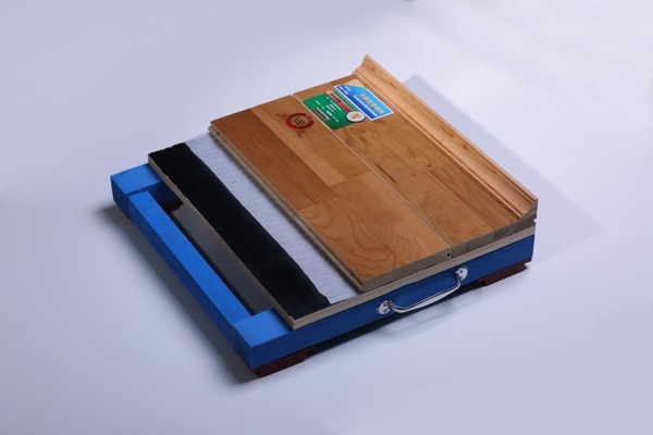 面板層一般采用楓木,橡木,柞木,厚度為22mm,寬度60mm,長度1800mm道凹槽及凸緣。面板層的膩子,底漆和清漆油漆工藝很重要,屬較好的面層材料,使用壽命30年以上,保修2年。國產體育木地板可用于乒乓球木地板、籃球場木地板、舞蹈房木地板,羽毛球木地板建設,體育木地板價格可根據情況面議。施工工藝打磨、底層底漆、上層面漆、劃線及上地腳線板。適用于籃球場,排球場,羽毛球場,乒乓球場等室內體育場館施工建設。1)原地坪處理:水泥砂漿處理,要求平整,無明顯缺陷;2)防潮層:全場鋪滿防潮棉及PE膜。3)彈性墊:專業紅色TPR熱塑性彈性墊;4)鋪設木龍骨:龍骨采用落葉松單龍骨,規格30mm×50mm,有防腐處理(固定龍骨用含膨脹螺絲);
